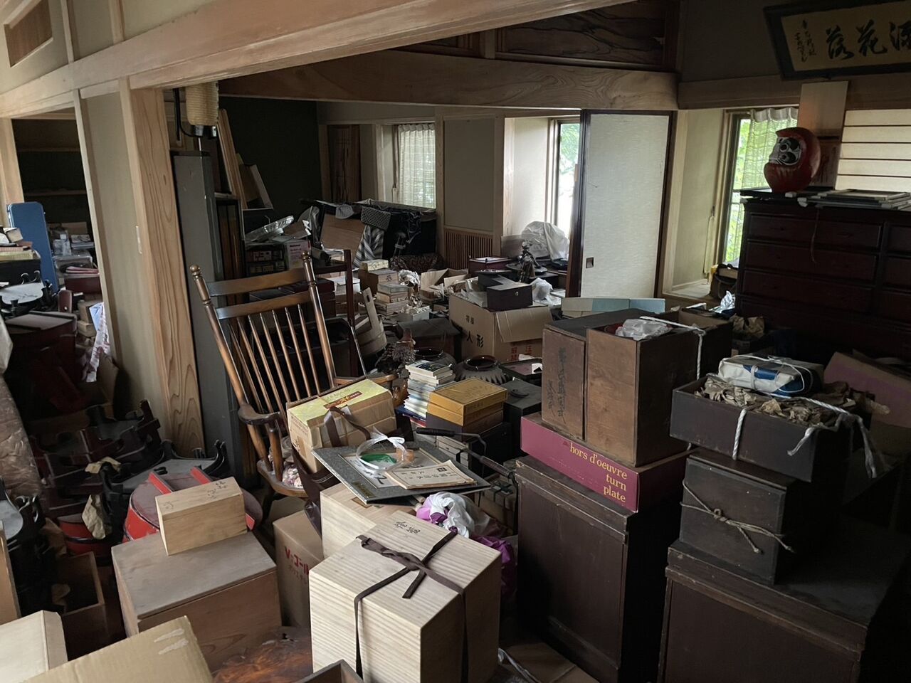 現地に向かうと広大な母屋と大きな蔵を持つ、歴史を感じる立派な邸宅でした。今回の作業の目的は蔵の収容物を外に出し、価値のあるものはご当主に許可をいただいて保存することでした。